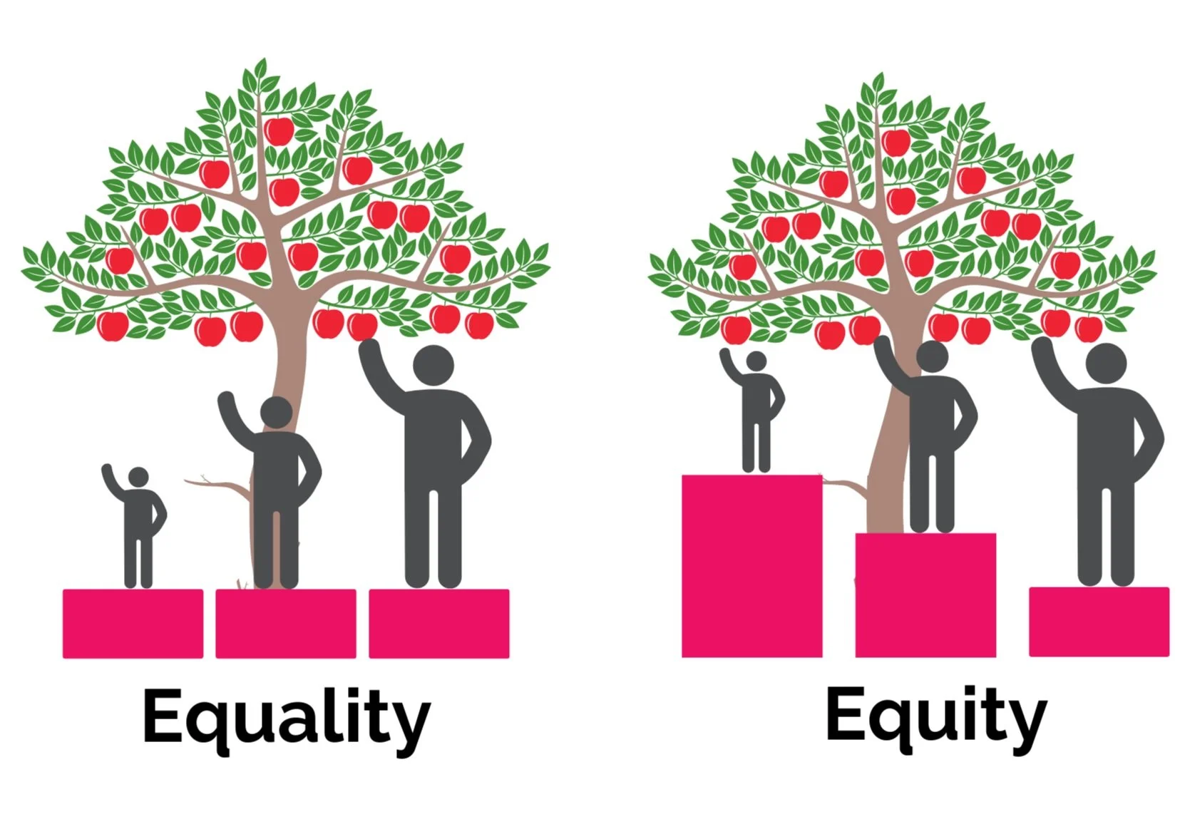InclusionInc says, ‘Equity seeks to provide equal opportunities as opposed to equal treatment’. Equality ensures equal treatment, while equity seeks to ensure fair treatment, access, opportunity, and advancement for all people. Whereas equality presupposes everyone begins from the same starting point (with the same background, environment, opportunities, barriers, and experiences), equity acknowledges individual circumstances and allocates resources and opportunities needed to create an equal outcome.